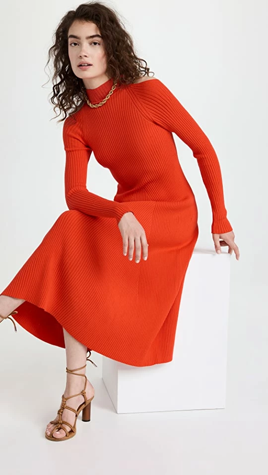 New ???? A.W.A.K.E. MODE Shoulder Cut Out Midi ???? Dress Red ????