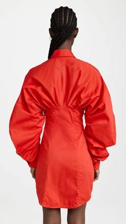 Top 10 ???? Aliette Puff Sleeve Button Down ???? Dress Red ????