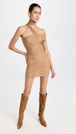 Coupon ???? Alexander Wang Ruched One Shoulder Halter ???? Dress Campfire ????