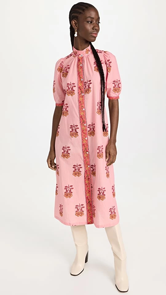 Top 10 ???? Aliette Puff Sleeve Button Down ???? Dress Red ????