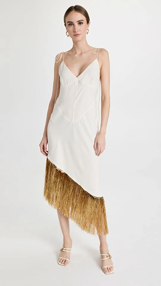 Deals ???? Victoria Beckham Metallic Removable Strap Bandeau ???? Dress Silver ????
