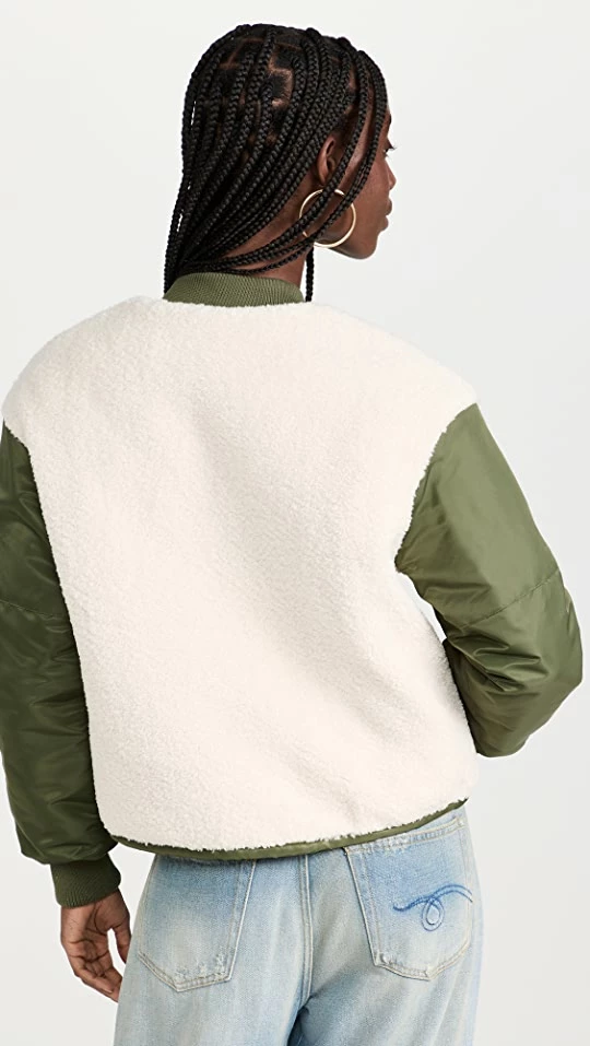 A transitional-weather layer that offers a break from your usual denim, this ASTR the Label jacket features a colorblock mix of soft, texture-rich sherpa and sleek nylon.