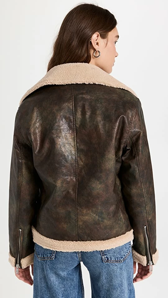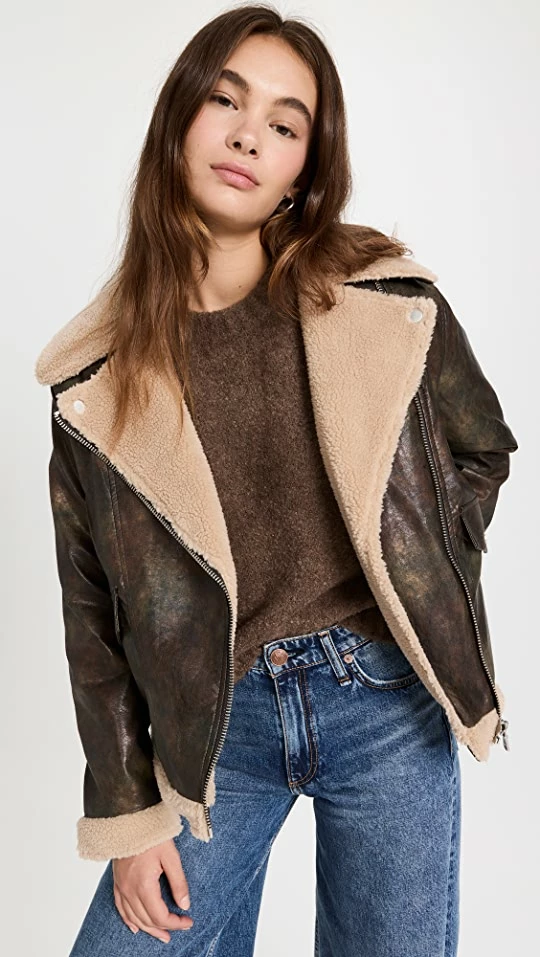 Best deal ???? Avec Les Filles Vintage Wash Faux Shearling Biker Jacket Carbon/Oat ⭐