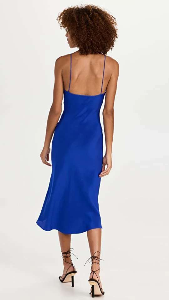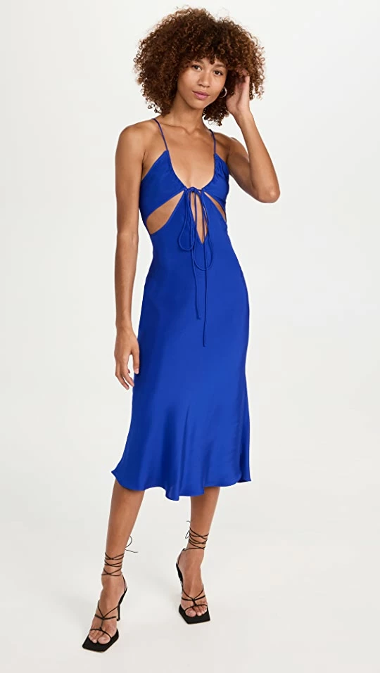 - Plunging neckline with tie keyhole