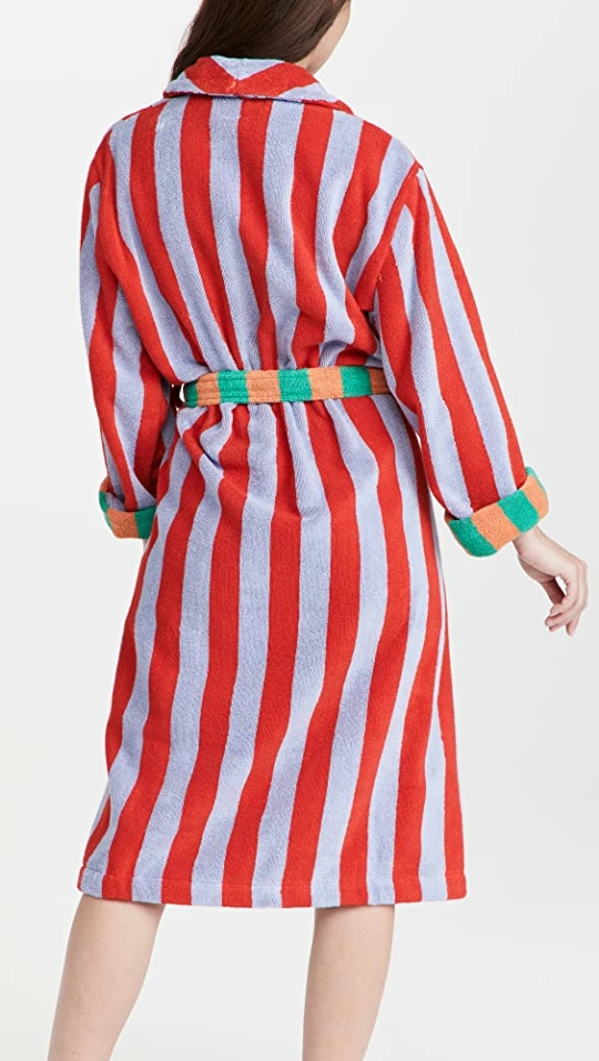 Fresh from Dusen Dusen, this comfy robe is crafted from soft, texture-rich fabric and detailed with a mix of eclectically colored stripes.