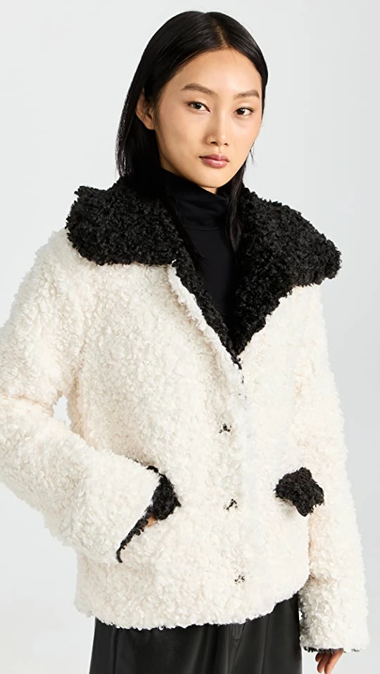 Discount ⭐ Jonathan Simkhai Corinne Vegan Sherpa Moto Jacket Black Multi ????
