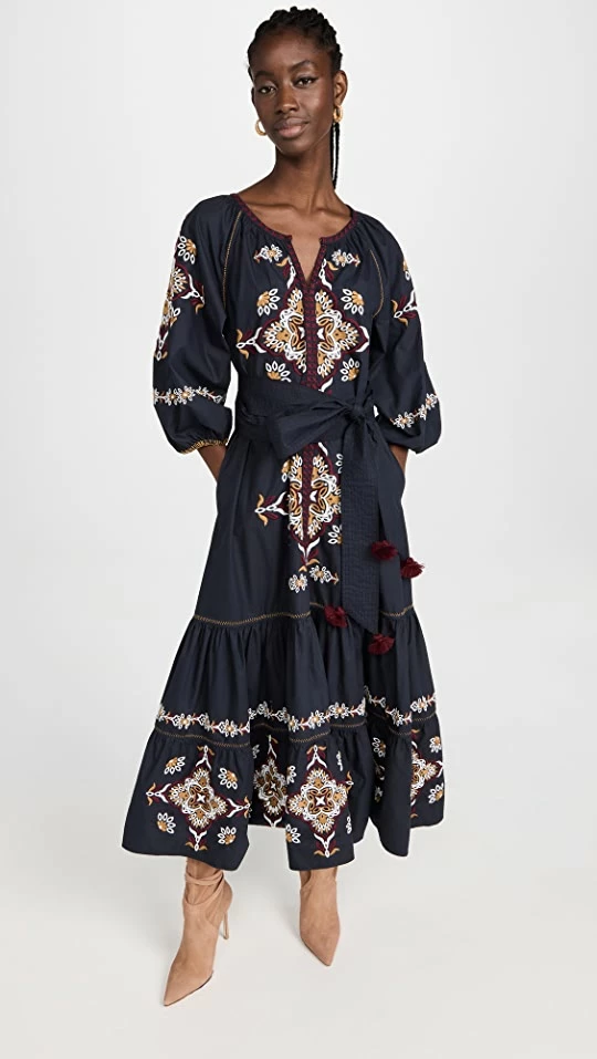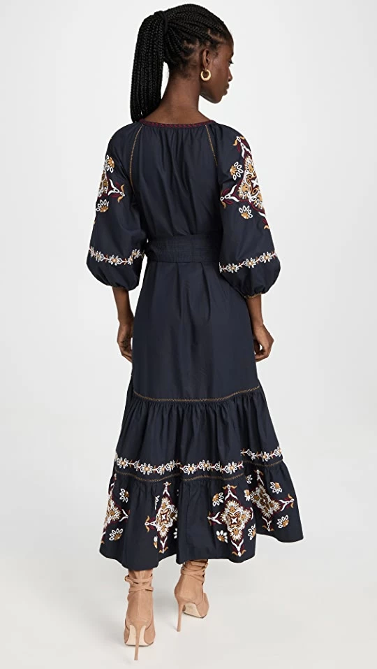 - V neck and elbow-length sleeves with covered elastic cuffs