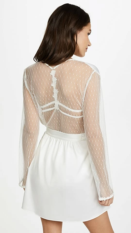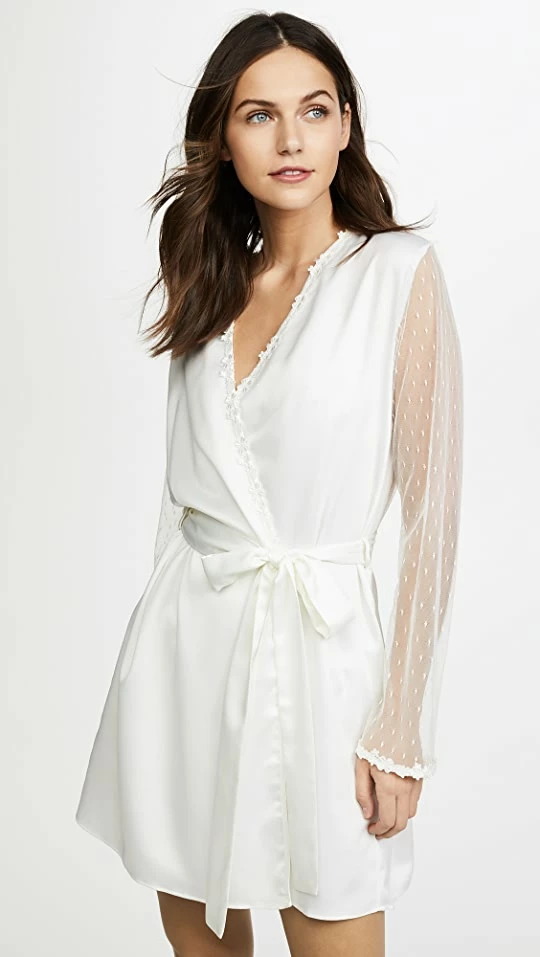 Peeks of skin through delicate lace make this charmeuse Flora Nikrooz robe the perfect way to add a bit of romance to your evening.