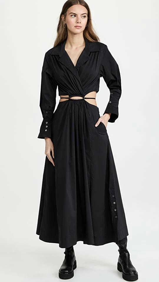 Best Sale ???? Jonathan Simkhai Alex Pleated Poplin ???? Dress Black ????