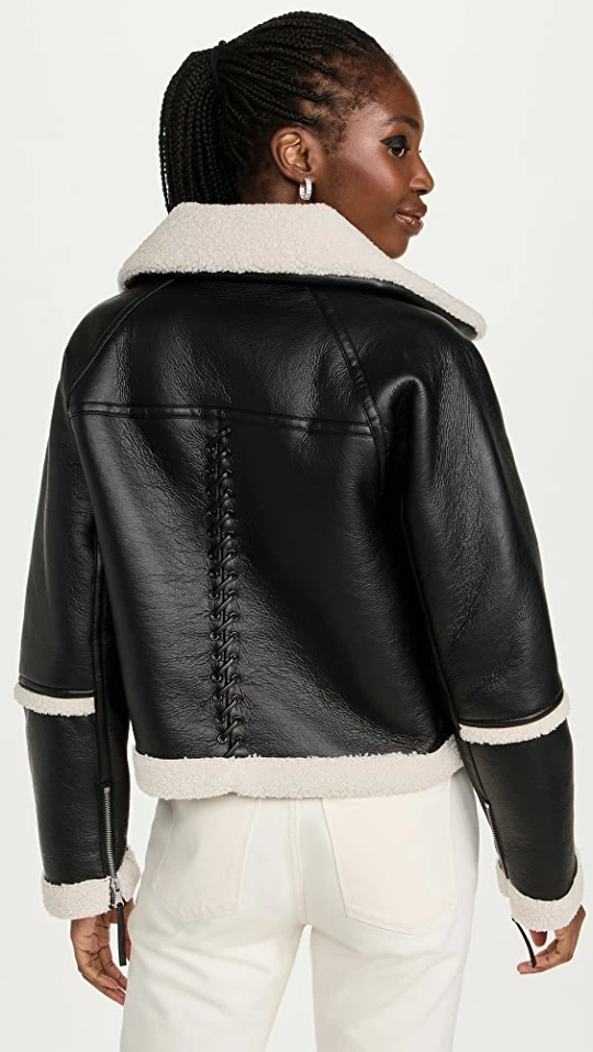 Discount ⭐ Jonathan Simkhai Corinne Vegan Sherpa Moto Jacket Black Multi ????