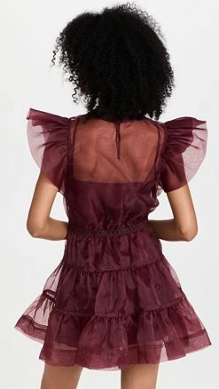 Coupon ???? Jonathan Simkhai Monique Organza Ruffle Sleeve Mini ???? Dress Mulberry ❤️