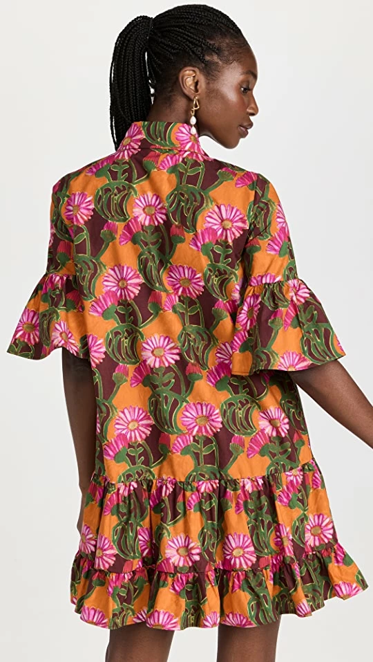 - Floral print and ruffle trim