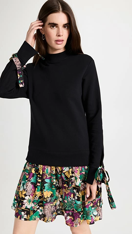 A fresh update on mixed-media style that takes inspiration from your favorite sweatshirt, this La Double J dress features an upper portion in soft french terry, and is finished with a woven, lavishly patterned skirt. Heels, sneakers, and sandals will all work equally well with this piece.