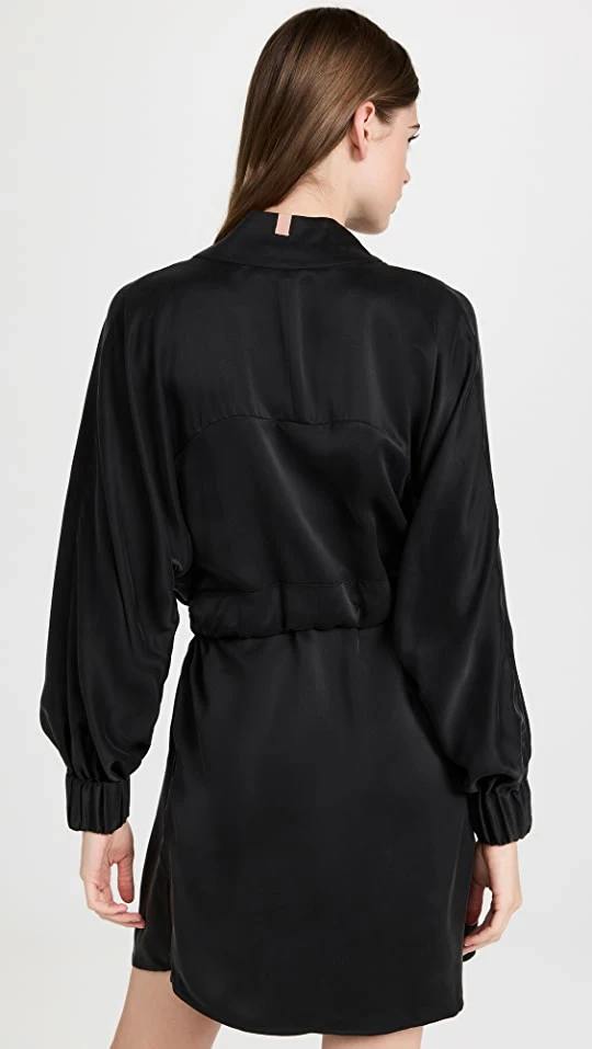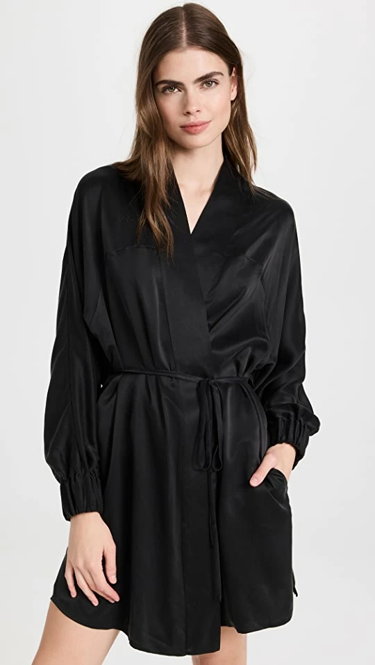 - Tie closure and self-belt at waist