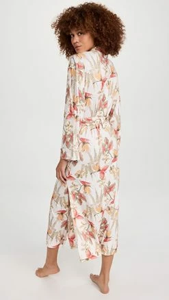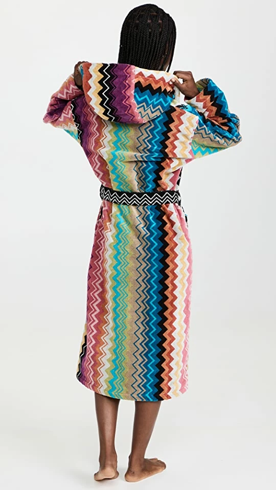 - Open placket with self-tie belt