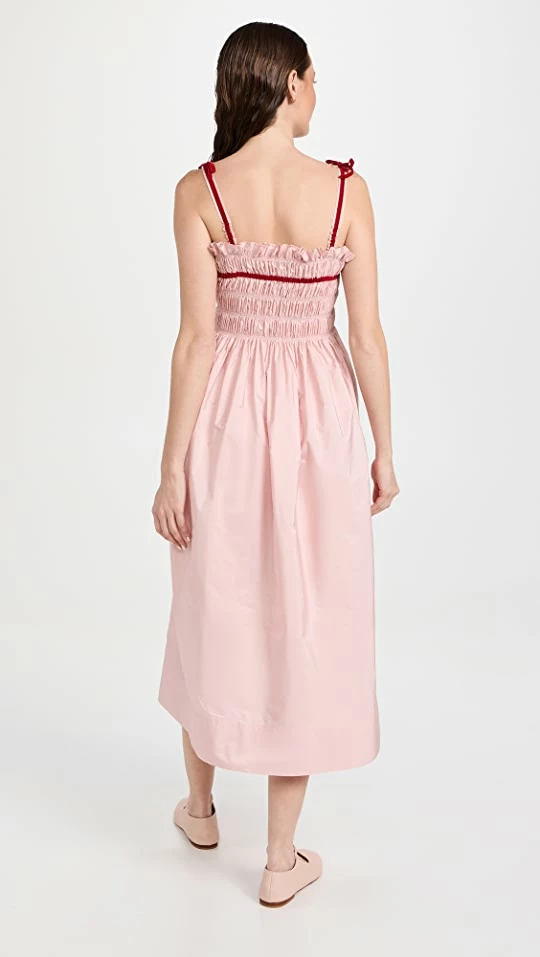 - Smocked elastic bodice with velvet ribbon ties