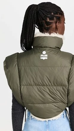 Discount ???? Isabel Marant Étoile Hoodiali Faux Shearling Vest Dark Khaki ❤️