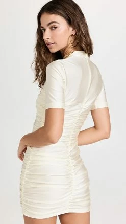 Cheap ???? Alexander Wang Short Sleeve Mock Neck Ruched Bodycon ???? Dress Vintage White ????