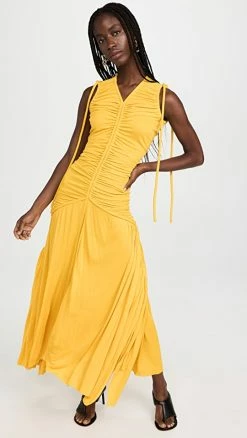 Buy ???? Proenza Schouler Viscose Jersey Sleeveless Cinched ???? Dress Yellow ????