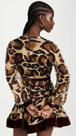 Cheapest ???? Sergio Hudson Tiered Mini ???? Dress With Velvet Trim Abstract Animal Print ????