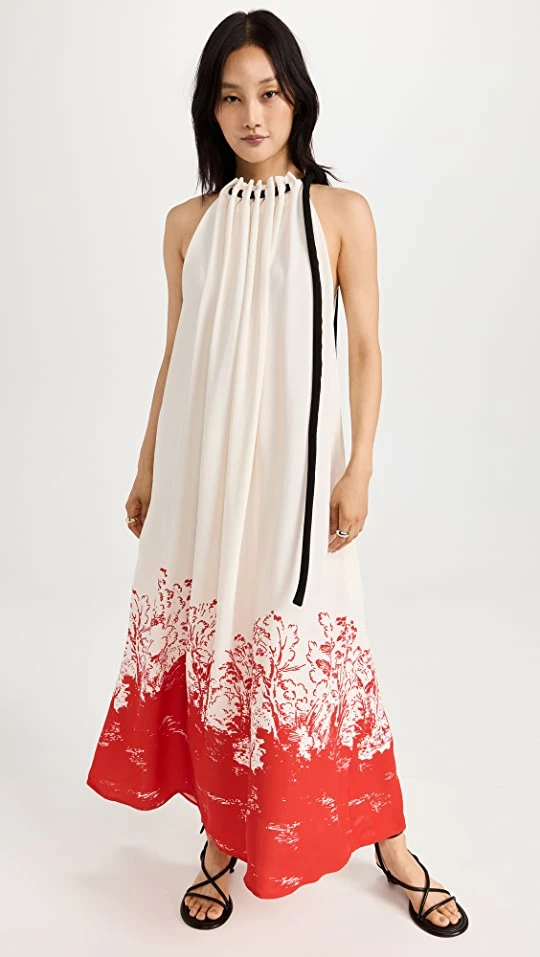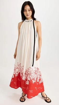 Budget ✨ Molly Goddard Taffeta Shiirred Midi ???? Dress With Velvet Tie Pink/Red ⭐