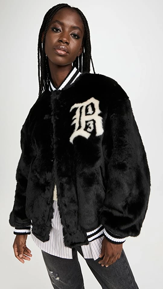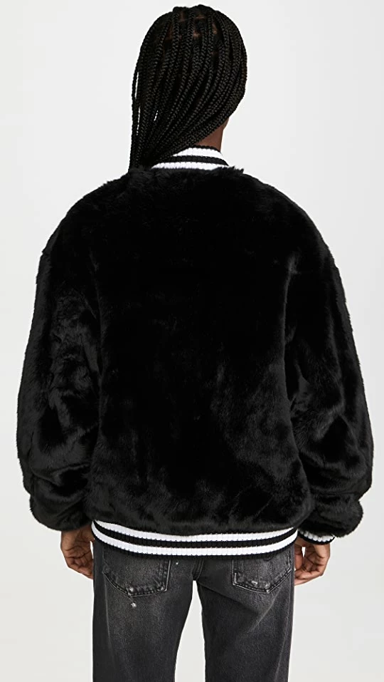 Outlet ✨ R13 Logo Furry Bomber Jacket Black ????