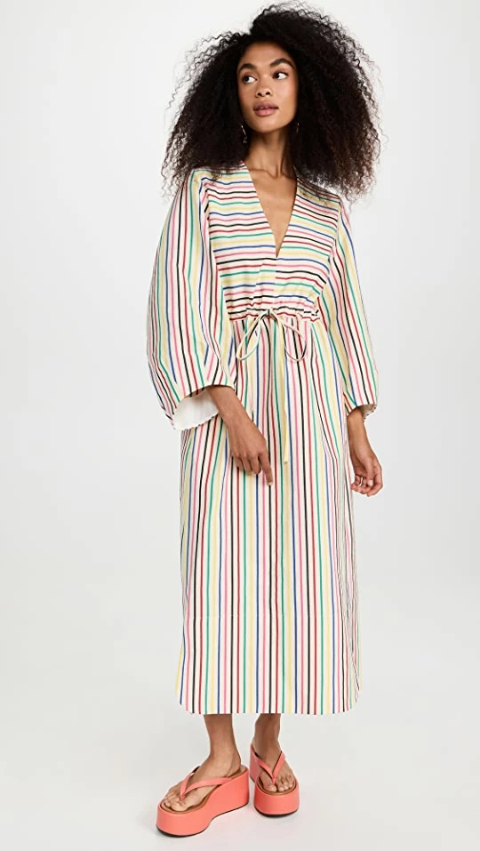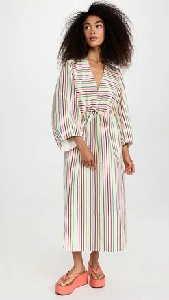 Budget ✨ Molly Goddard Taffeta Shiirred Midi ???? Dress With Velvet Tie Pink/Red ⭐