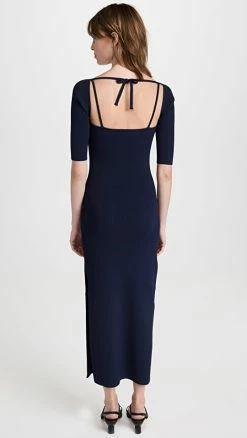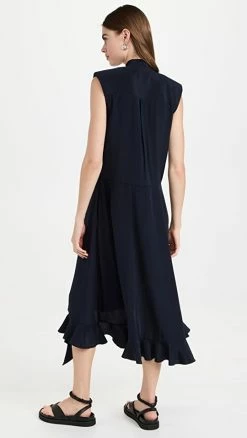 Best Pirce ✨ Tibi Silk Detached Ruffle ???? Shirtdress Dark Navy ????