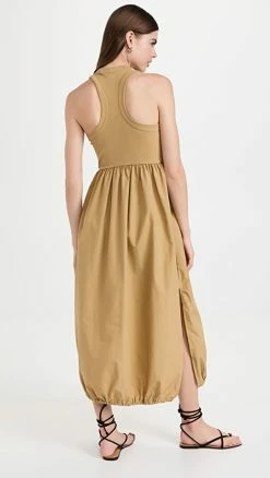 Best Pirce ???? Tibi Ribbed Tank Balloon ???? Dress Khaki ????