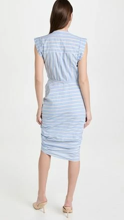 Best Pirce ✔️ Veronica Beard Ruched ???? Shirt ???? Dress Blue/White ✨