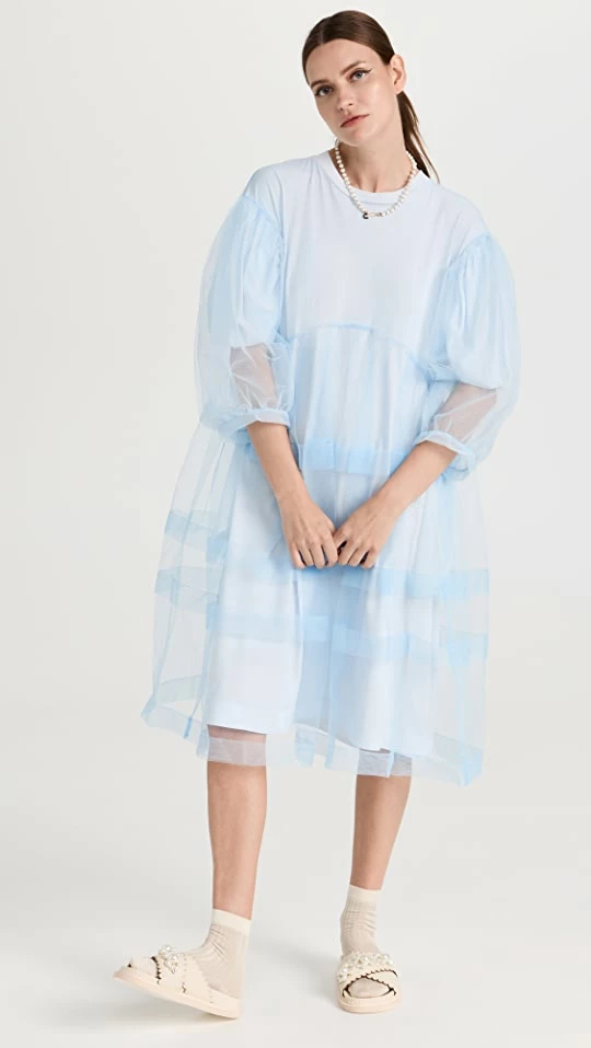 - Tiered tulle overlay with open back