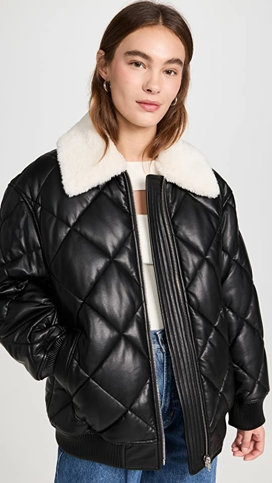 Discount ⭐ Jonathan Simkhai Corinne Vegan Sherpa Moto Jacket Black Multi ????