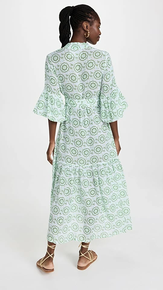 - Button placket and self-belt at waist