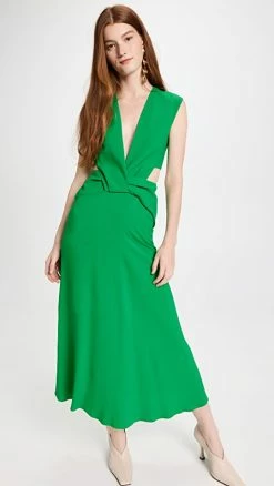 Deals ???? Victoria Beckham Metallic Removable Strap Bandeau ???? Dress Silver ????